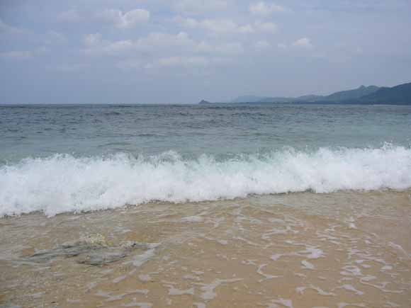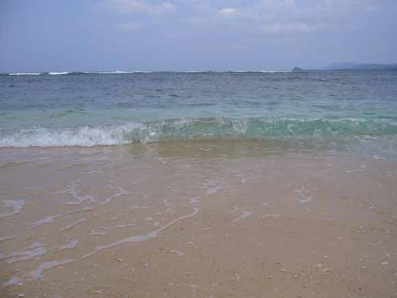 沖へ数十メートル歩いても水深は10〜15cm。