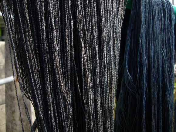 藍を2回・クール2回そしてまた藍で染めた糸。