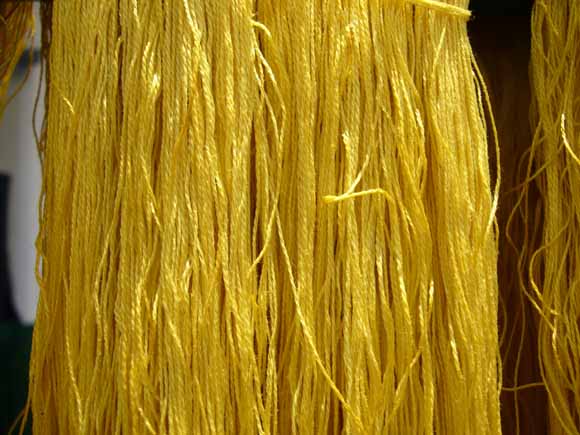クールの一番液で染めた糸。