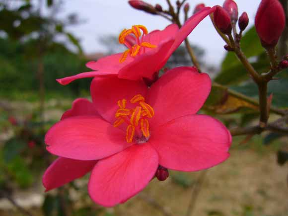 開花の瞬間が面白いらしく、パイプ状の小さいつぼみの中に蘂(しべ)がゼンマイのように巻かれて収められていて,それがつぼみを押し広げて割って出てきて,まもなくスルスルと伸びていくんだって。
