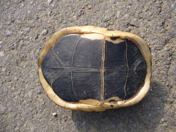 甲羅のお腹の部分が半分に折り曲がるようになってて、手足を引っ込めると背中側とお腹側の甲羅がくっついて、完全に蓋が閉じてしまうとゆー変わったカメ。