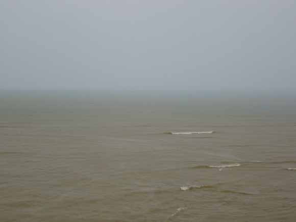 で、堤防で囲まれた港は誰かがセッセと入浴剤をまいてるみたい。