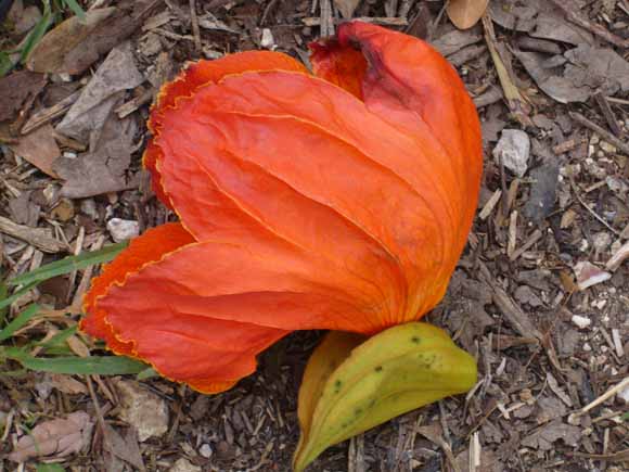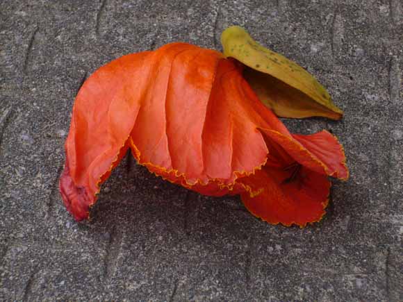今年は朝で曇ってたから、散った花がそんなにしおれてなかった。