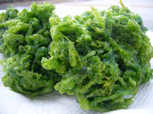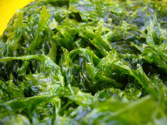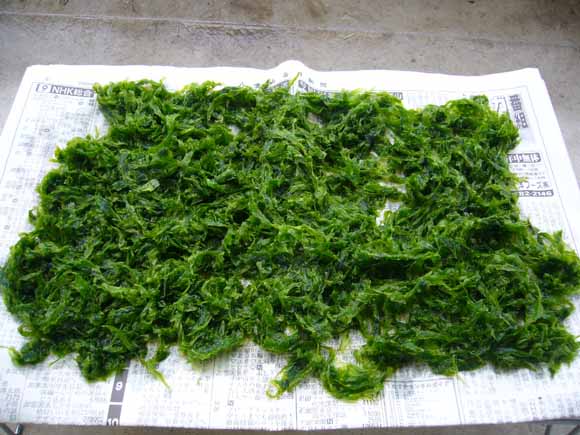 濃い緑はぬるぬるして柔らかい、薄い緑はぬめりはなく硬い。