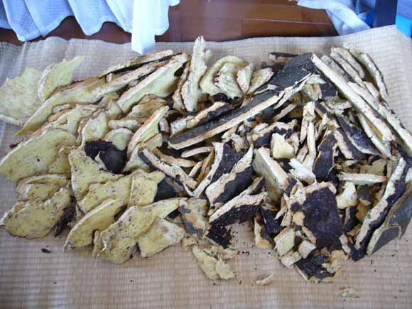 待ち合わせ場所に向かう車中、なぜこの袋(ホントの名前は土のう袋)が必要かを質問され、福木をはぎに行く事・染めをする事を話したら、(途中省略)「頑張ってねぇ!」。