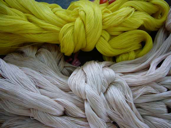 上の黄色いのがテーブルセンター用、下のうっっっっすい茶色が広幅帯用。