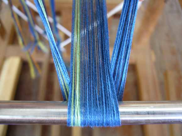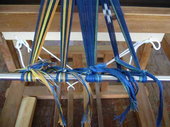 今日はテーブルセンター&広幅帯の絣を整経。
