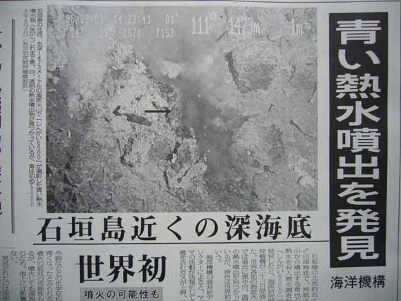 海洋機構は今年3月に再び潜航調査を行い、熱水を採取して成分を調べるとともに、海底地震計を設置する予定。 出典:八重山毎日新聞