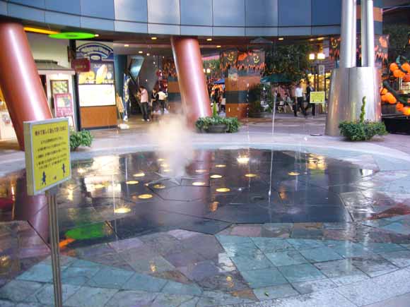あんな感じで、霧状と普通の噴水がランダムに噴出しています。