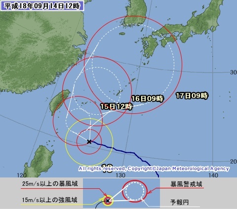 そうそう、かなり大きめの台風13号がやって来ています。